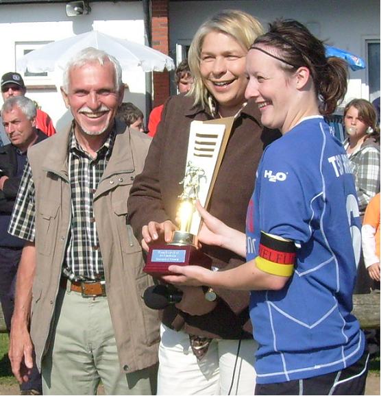 Mannschaftsführerin Wiebke Korthals den von der Landrätin neu gestifteten Pokal.