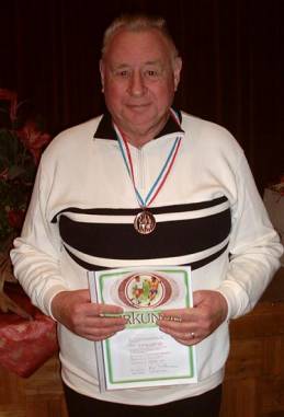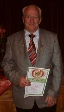 Stehende Ovationen aller Anwesenden erhielt Horst Dwenger, der seit 1950 Schiedsrichter ist. Horst ist leider schwer erkrankt, ließ es sich aber nicht nehmen, an der diesjährigen Feier teilzunehmen. Horst wurde für seine zahlreichen Verdienste und Ehrenämter bereits mit allen Ehrungen und Treuenadeln des SHFV und des KFV Segeberg ausgezeichnet. Hans-Jürgen Lühmann hat für ihn die DFB-Treuenadel beantragt und wird sie Horst überreichen, sobald die Nadel vom DFB eingetroffen ist.